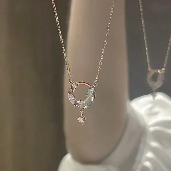 女性のためのカラフルなガラスの石のペンダントネックレス,月と星のチョーカー,韓国のチェーン,ファッションジュエリー,ギフト