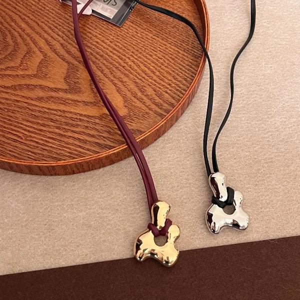 ミニマリストの透かし彫りペンダントネックレス,調節可能なレザーコード,セーターチェーン,アクセサリー,日本と韓国