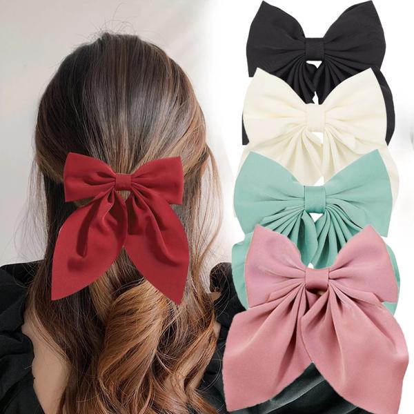 蝶ネクタイ付きヘアクリップ,女性と女の子のための無地の髪留め,ポニーテールクリップ,ヘアアクセサリー,ギフト