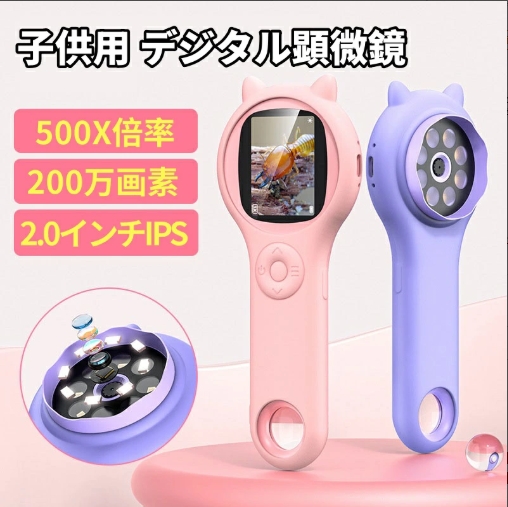 【20%超還元セレクト】美品登場 子供用 デジタル顕微鏡 ハンディ 手持ち顕微鏡 LEDライト付き マイクロスコープ 電子顕微鏡 子ども用 キッズ 2.0インチ 500X拡大 コンパクト 持ち運び便利 小学生 知育玩具 自由研究 動物 昆虫 生物観察 実験室 顕微鏡 観察キット 子供