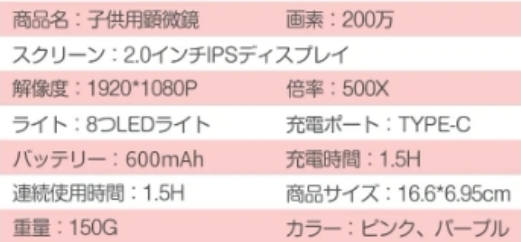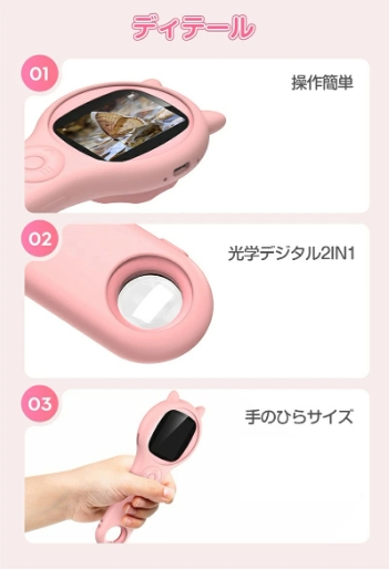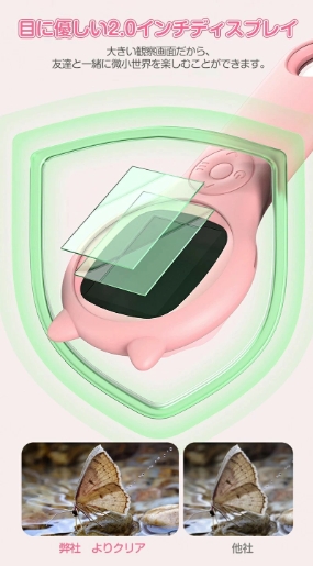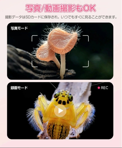 鮮やかな画面を表現し、HD2.0インチIPSの大画面ディスプレイでより鮮明に。LEDライトやスパイラルズーム付きでさらに観察しやすくなります。さらに光学ガラスを採用し、大画面で見やすく、お子様の目にも優しい設計となっております。