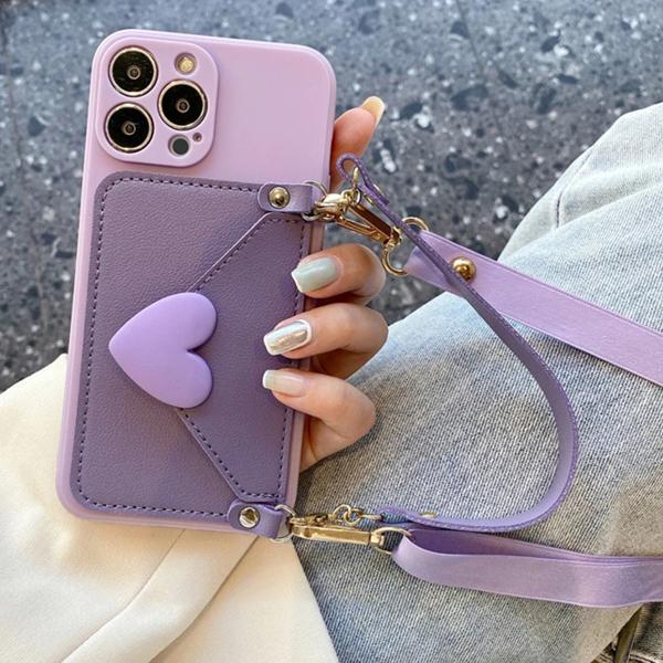 クロスネックストラップカードホルダー,iPhone 11,15,13,14 pro max,x,xs,xr max用の紫色のケース