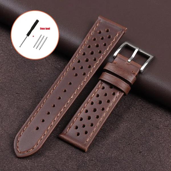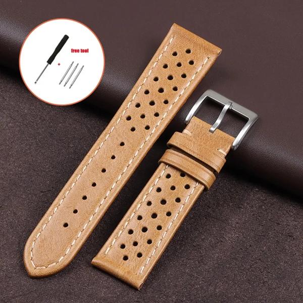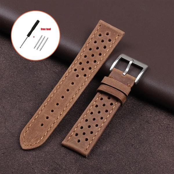 男性と女性のためのヴィンテージ本革ストラップ、ユニバーサル牛革時計バンド、通気性ブレスレット、スポーツリストベルトアクセサリー、18mm、20mm、22mm
