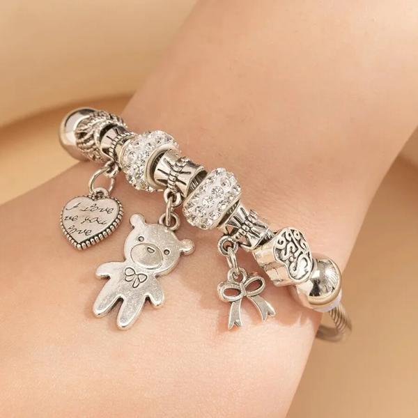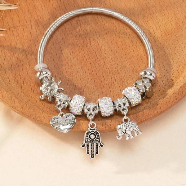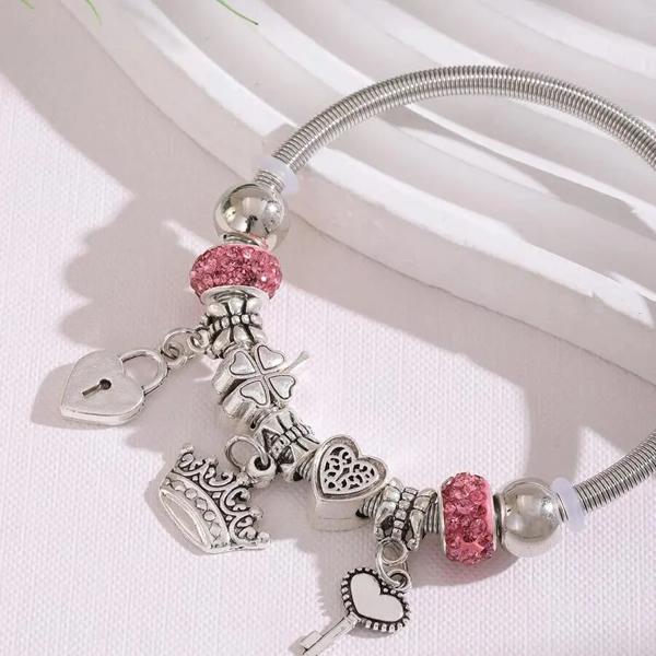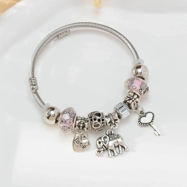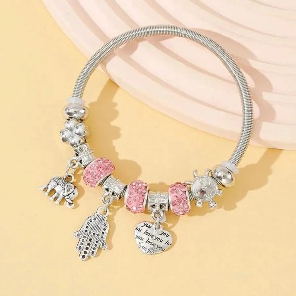 女性のためのピンクのガラスペンダントブレスレット,象のクマ,手作りの時計,愛の贈り物,ジュエリー