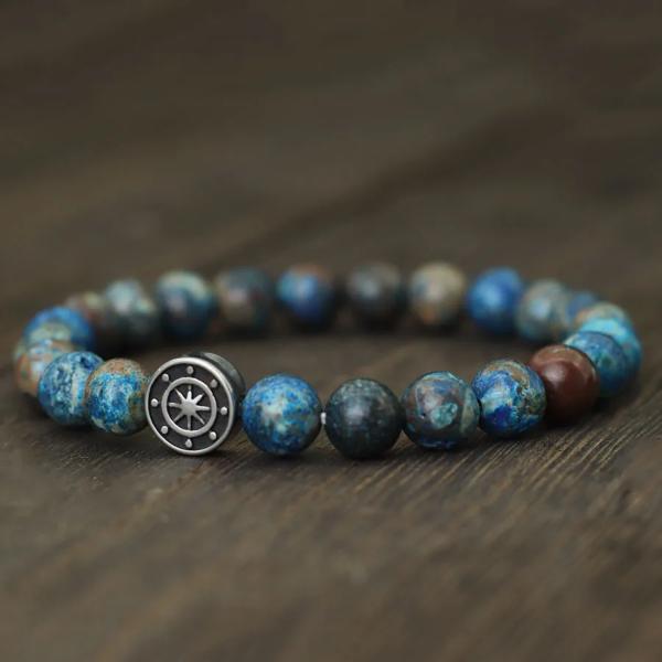 天然石の本物のブレスレット,男性用,シンプルなスタイル,サイクリング,海賊,コンパス,タイガーアイ,ストランド,レジャーアクセサリー