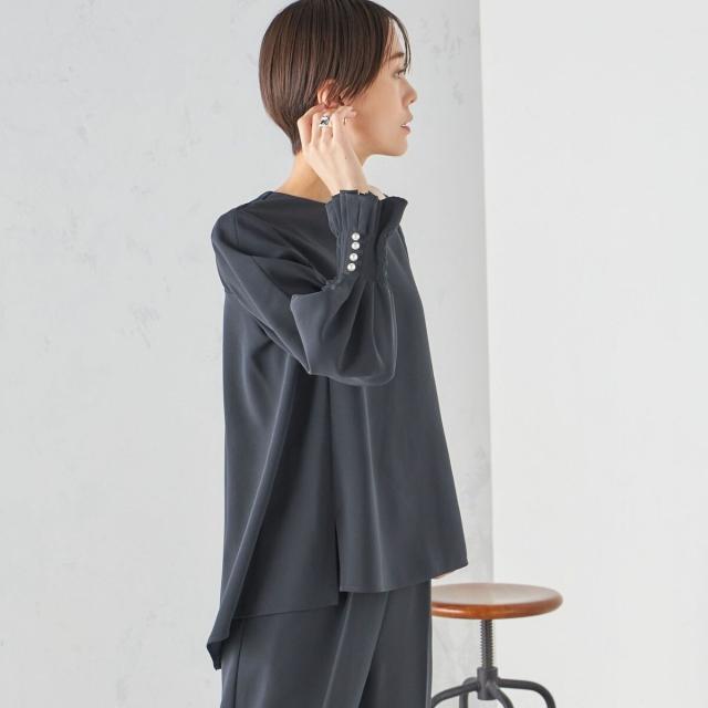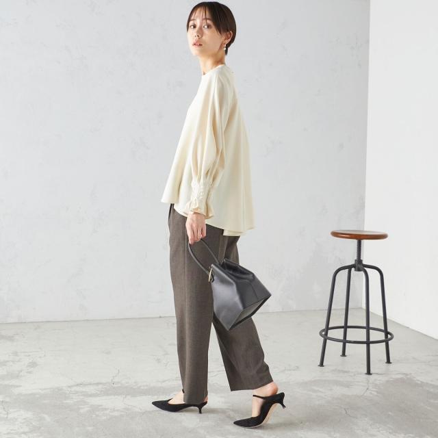 袖口のタックフリルと、パフボリュームの立体ディテールが印象的なブラウス。