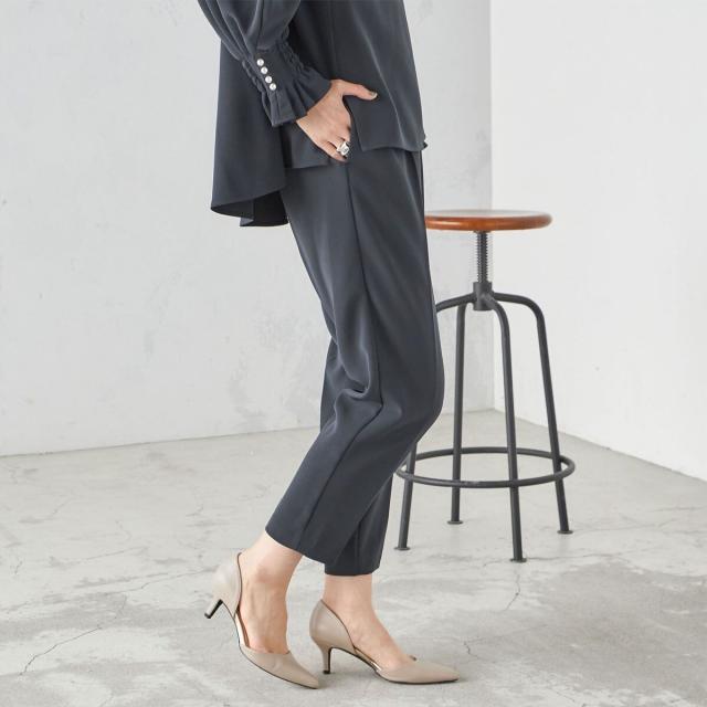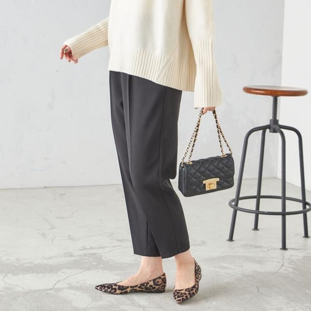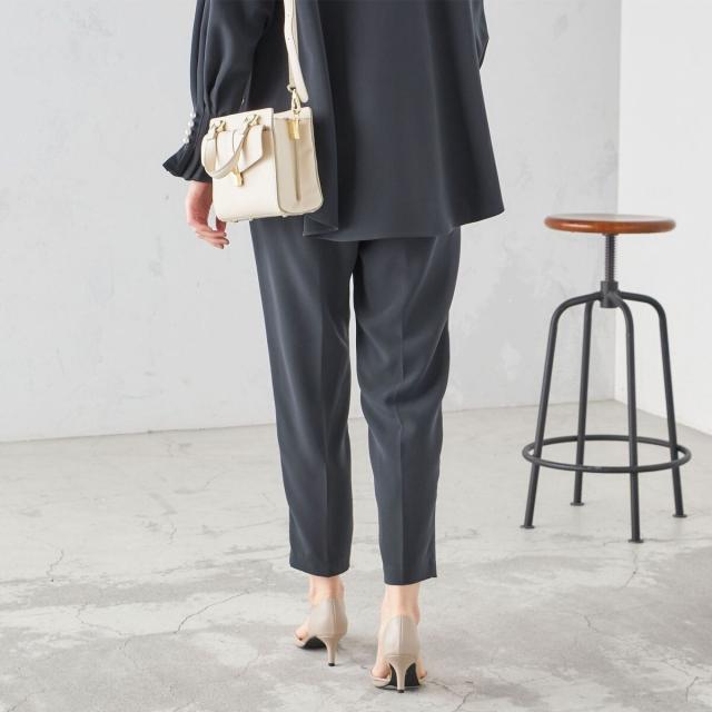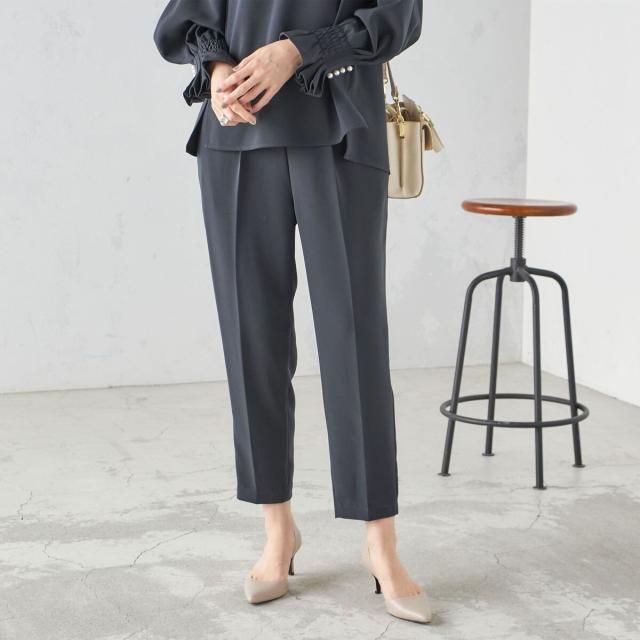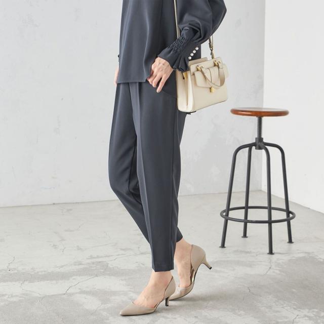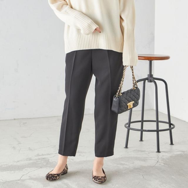 コーディネートしやすいテーパードパンツは、アンクル丈のセンタープレス入りで足を美しく見せてくれます。