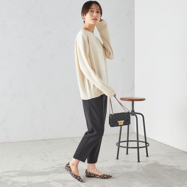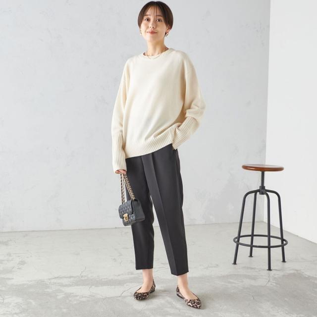 オフホワイトはブラウスがオフホワイトでパンツがブラックの、メリハリのきいた色合わせ。