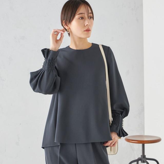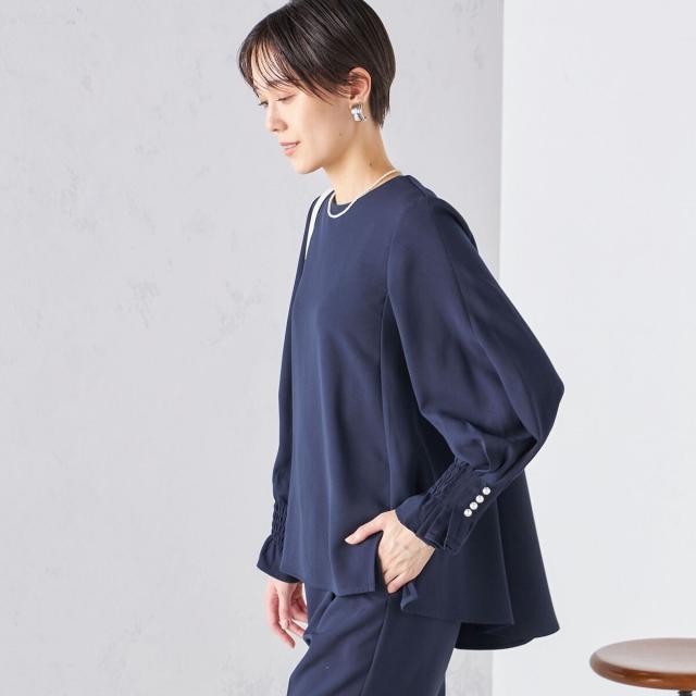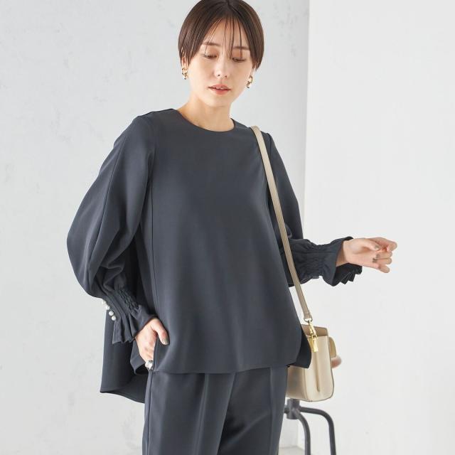 袖先にシャーリングが入っているため、袖を少しまくってボリュームをつけたスタイルでの着用も◎