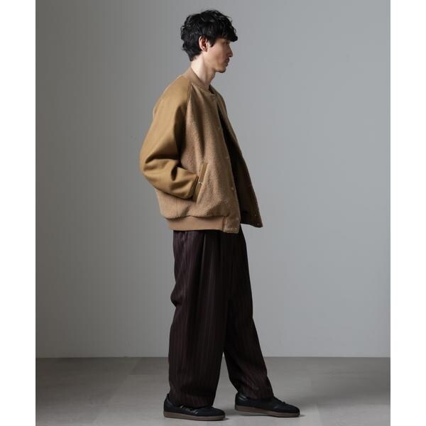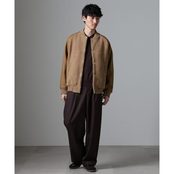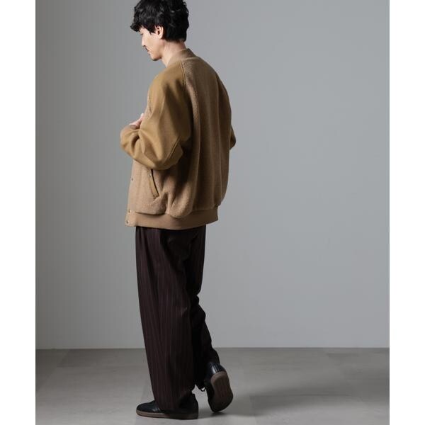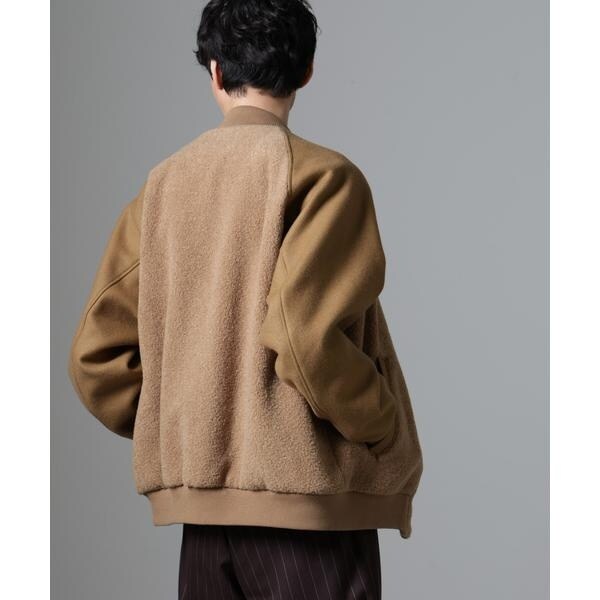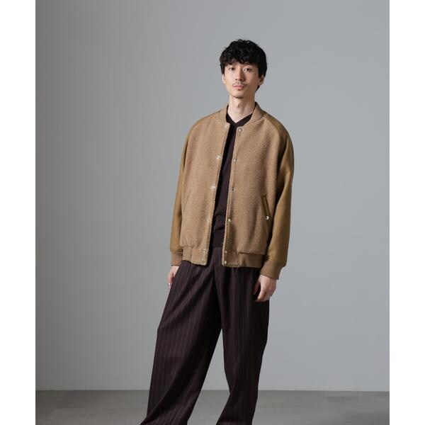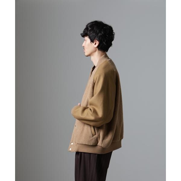 身頃に高品質なウールブレンドボアを使用したバーシティージャケット。