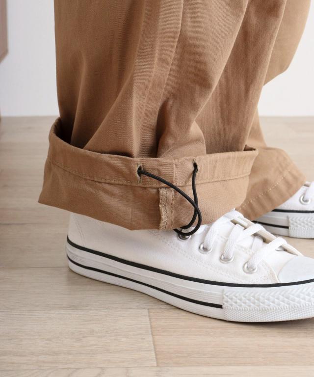 特徴的なワイドカーゴデザインはユニークなスタイルを演出し、両サイドの大きなポケットが機能性をプラスします。