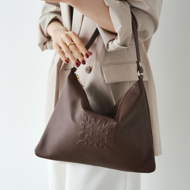 ラシット(russet)/<本革・370g>エンボスモノグラムショルダーバッグ(CE−1547)