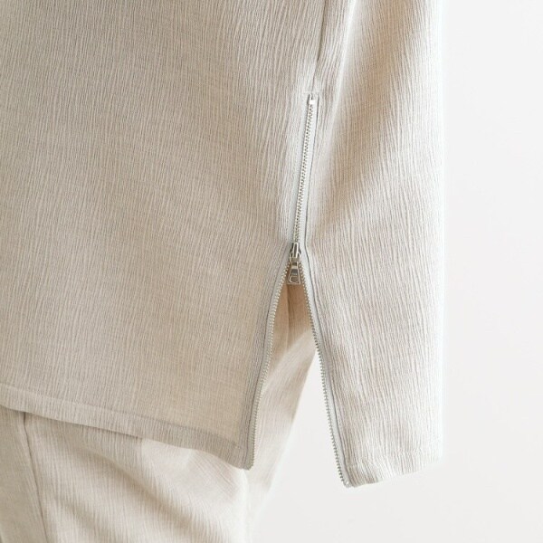 着用の際の負担緩和も兼ねた、左脇にファスナーを配したデザイン。