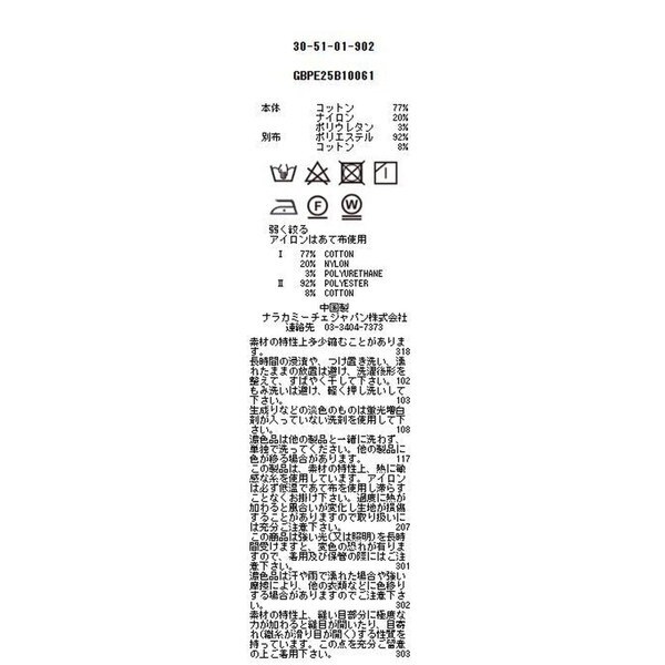 ■素材:ブラック/ブルー:本体、コットン77%、ナイロン20%、ポリウレタン3%、別布、ポリエステル92%、コットン8%