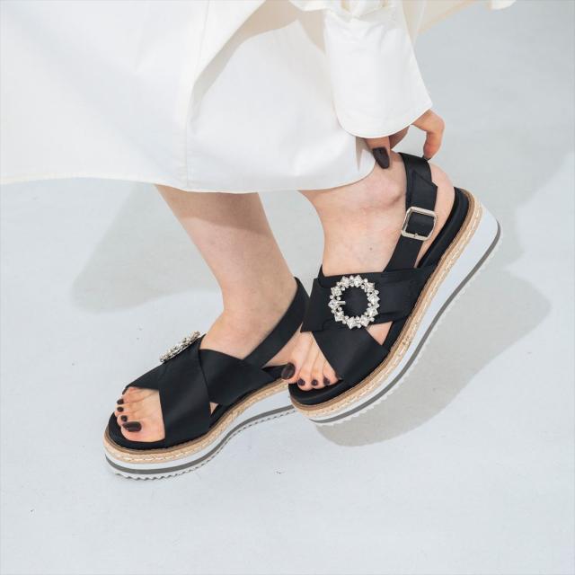 【25春夏新作】【軽量・S−LLサイズ展開】クロスベルトジュートビジューサンダル IY5716