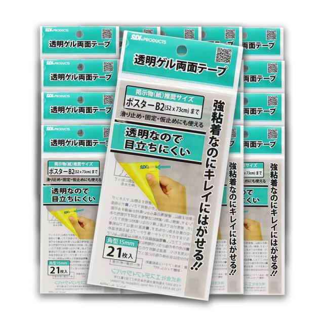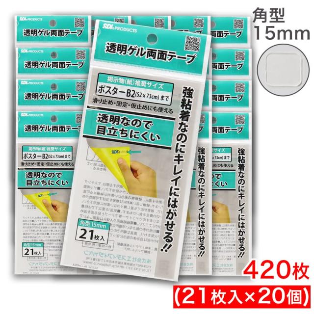 透明ゲル両面テープ 強粘着 角形 15mm 21枚入 ×20個