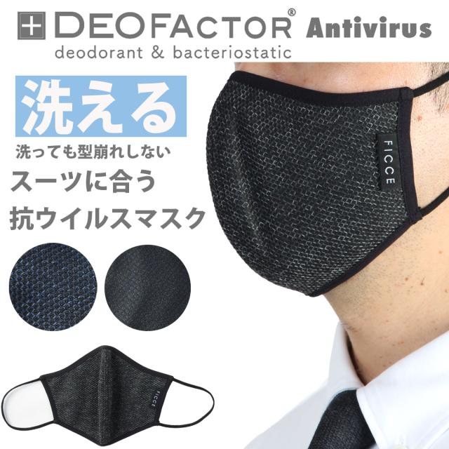 日本製の抗ウイルス・制菌素材デオファクターアンチウイルスを使用したスーツに合う洗えるマスクです。