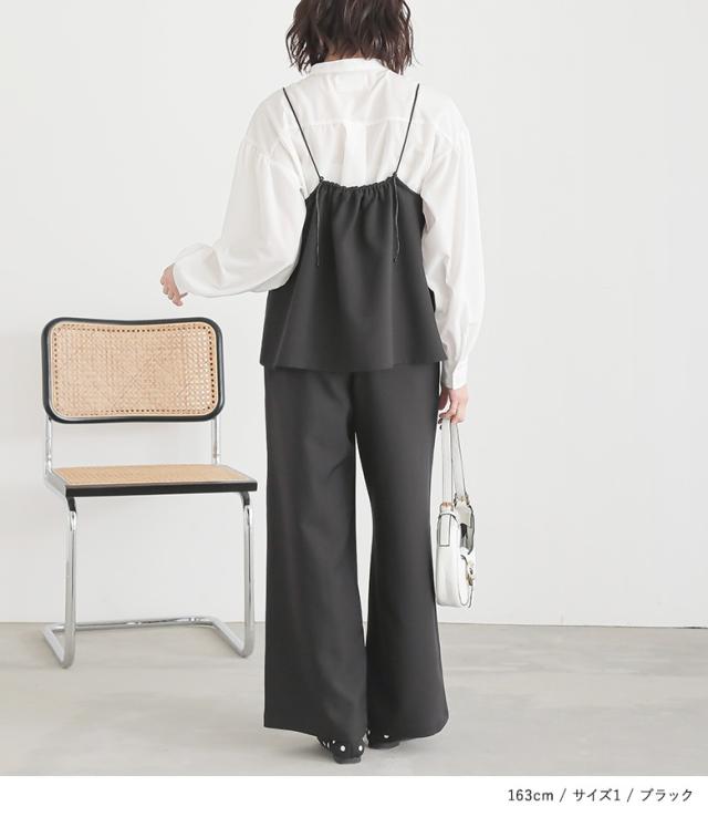 『ツイルキャミセットアップ』【メール便不可】【30】[セットアップ レディース トップス ボトムス キャミソールパンツ ロング丈 ワイド ストレート フレア レイヤード ストレッチ 春 秋]