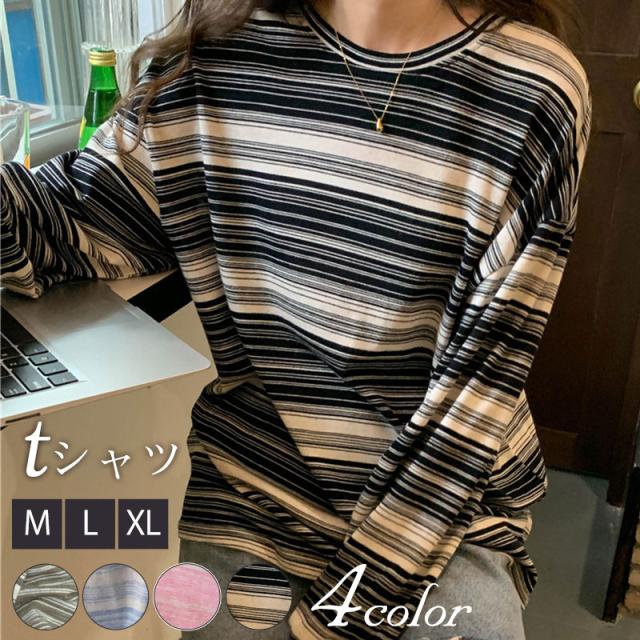 【2枚購入で300円OFFクーポン 】tシャツ レディース 長袖 ボーダー カットソー ロングTシャツ スウェット 大きいサイズ ルームウェア 部屋着