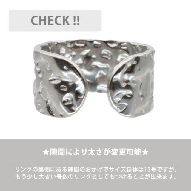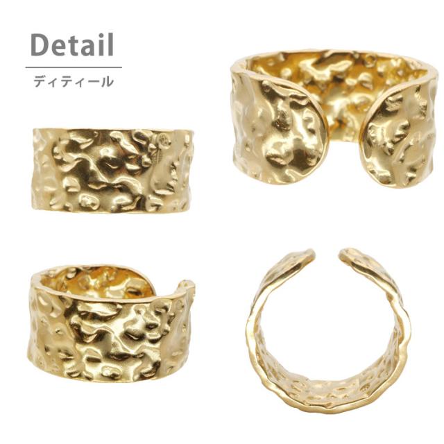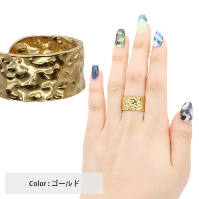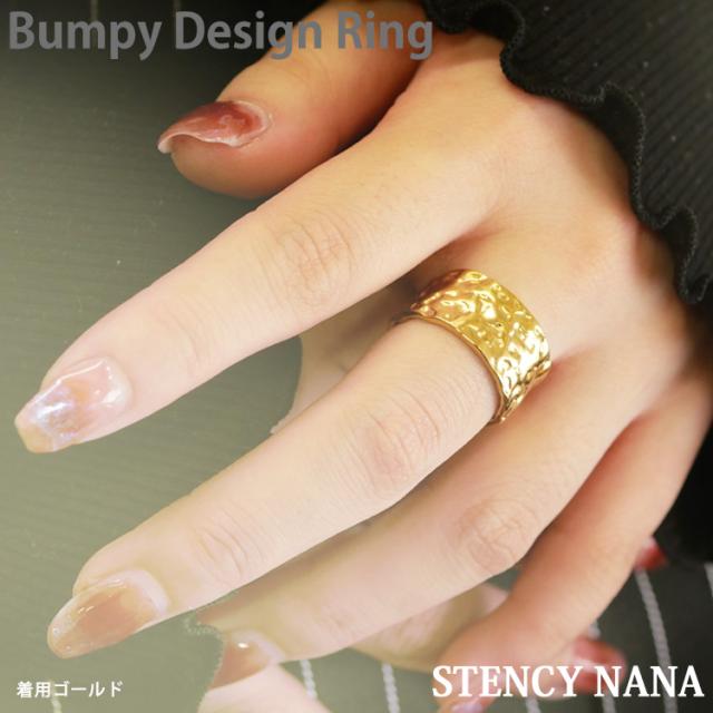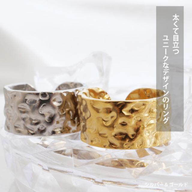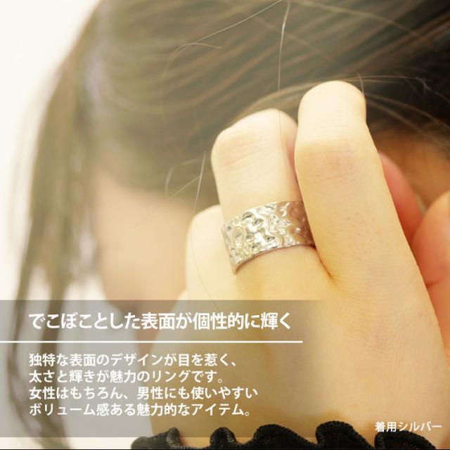 独特な表面のデザインが目を惹く、太さと輝きが魅力のリングです。