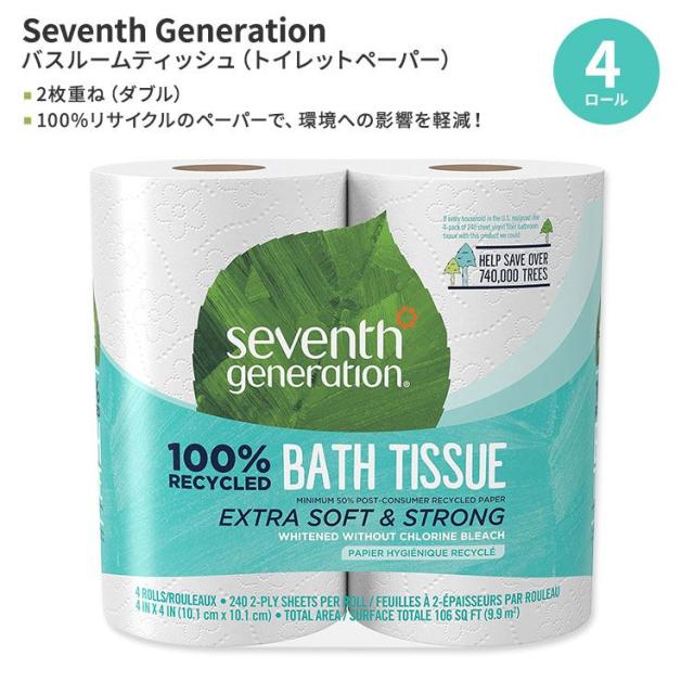 【お取り寄せ商品】セブンスジェネレーション 100%リサイクル バスルームティッシュ (ダブル) ホワイト 4ロール Seventh Generation 100% Recycled White 2-ply Bathroom Tissue トイレットペーパー