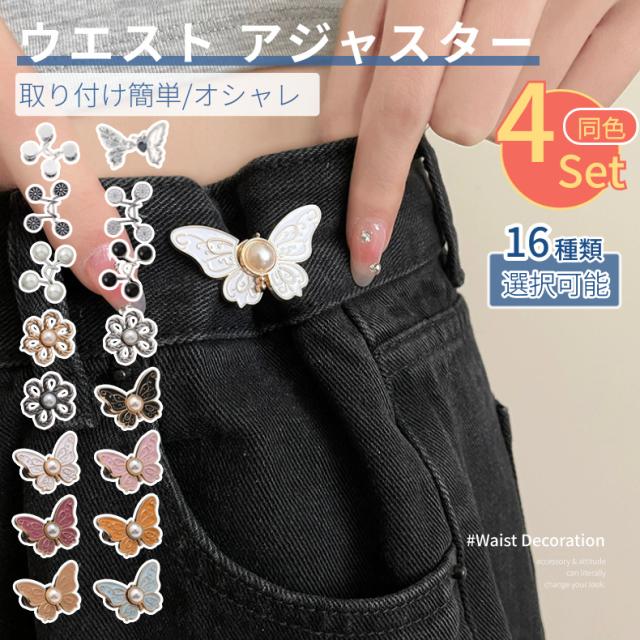 ウエストアジャスター 4個セット ウエストバックル ウェスト調節 アジャスター ウエスト 男女兼用 調整アジャスター ウェスト調節 クリップ サイズ調整 腰細見え【L612】