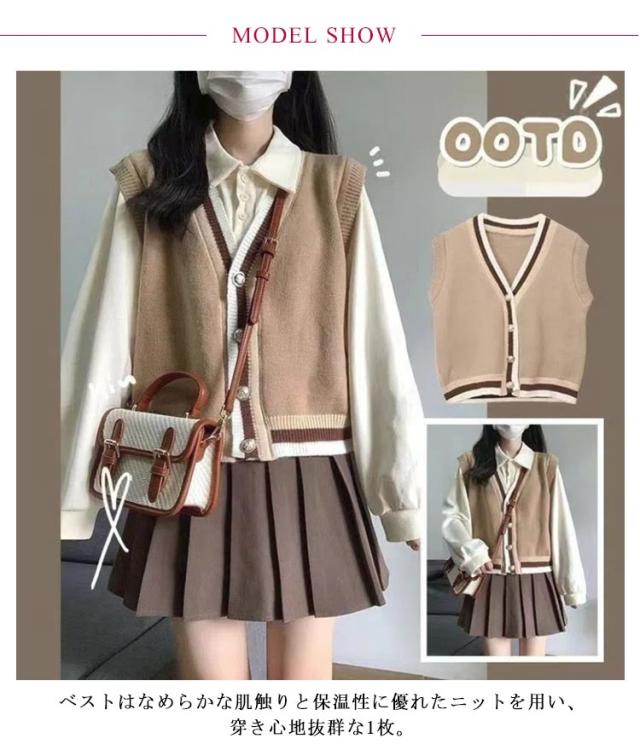 JK制服 学生 女の子 プリーツスカート プリーツスカート レディース 上下セット シャツ ベスト 学院風 ニットベスト 3点セット 韓国 セットアップ スクール 高校生 中学生 学生服 スクール コスプレ衣装