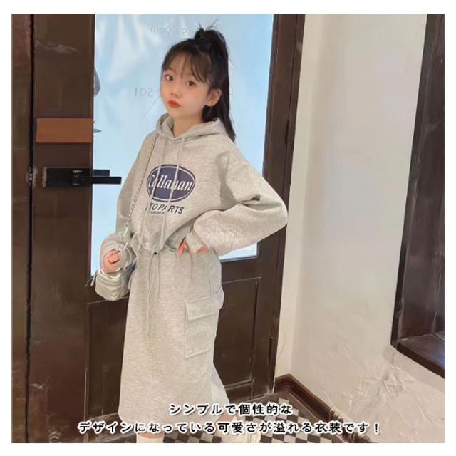スウェット トップス フード付き セット 韓国 キッズ 上下 トレーナー スカート 長袖 こども服 女の子 2点セット ロングスカート パーカー 小学生 春秋 キッズ ジュニア 幼稚園 中学生 パーカー おしゃれ 子ども服 春 秋 冬 子供服 可愛い 110 120 130 140