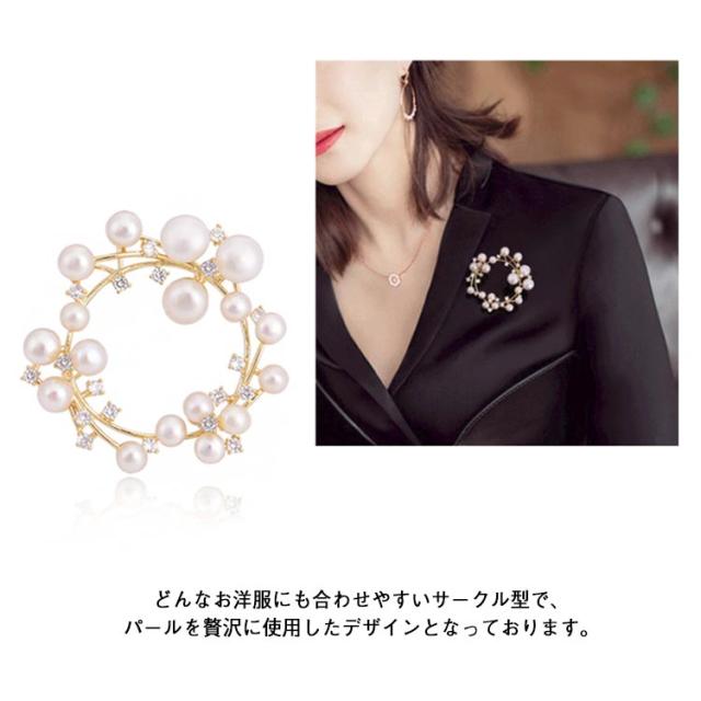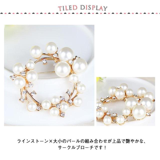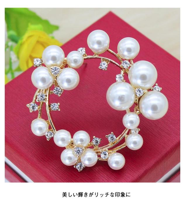 | 【パールダイヤブローチ】 ラインストーン×大小のパールの組み合わせが上品で艶やかな、サークルブローチです! コサージュ変わりに、胸元に上品かつ華やかな輝き 美しい輝きがリッチな印象に どんなお洋服にも合わせやすいサークル型で、 パールを贅沢に使用したデザインとなっております。 ブローチとして使う以外にも。 かばんやポーチ、帽子につけてもかわいい。 紐を通してネックレスとして使うことも可能です。 | |