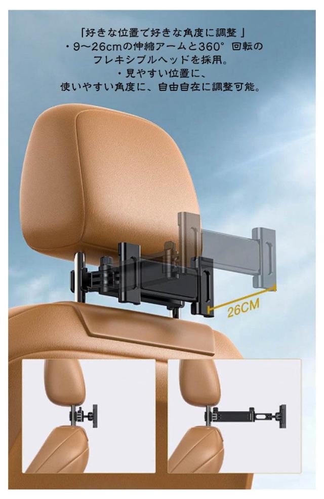 車載 車 ヘッドレスト iPad 固定 車用 伸縮 アーム 9〜26cm 伸びる タブレット 車載用 後席 車載ホルダー スマホ タブレットホルダー iPhone スマホホルダー ホルダー 伸縮 簡単取り付け 工具不要 Android タブレットホルダー Nintendo Switch