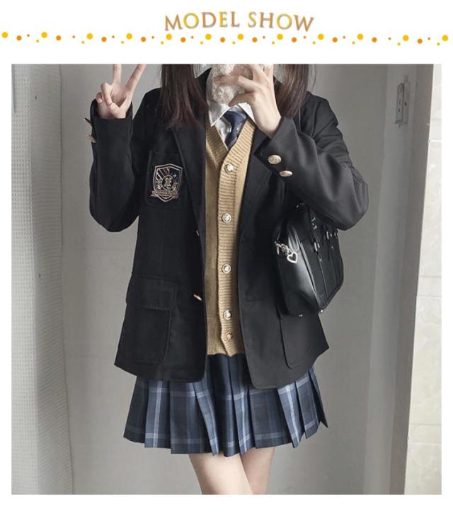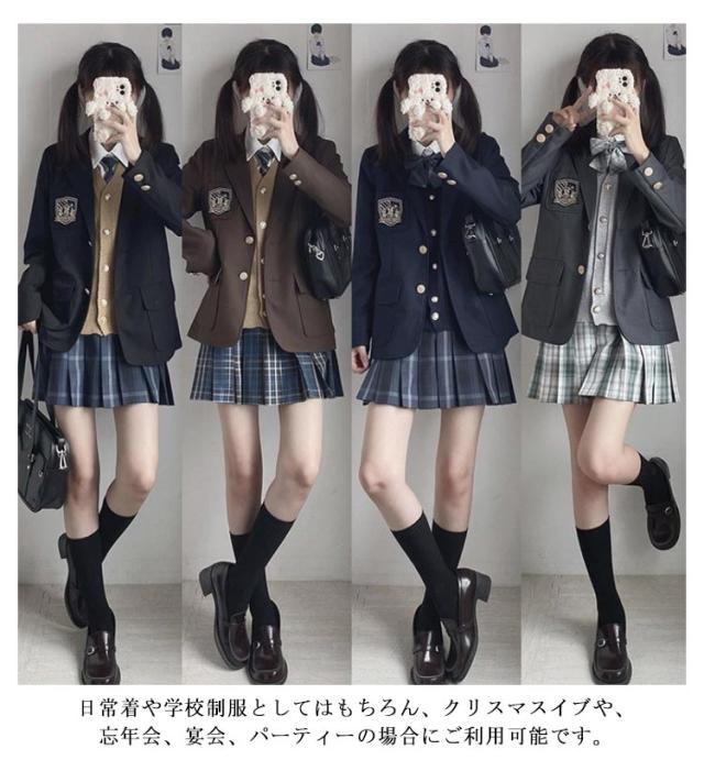| 5点セット内容:ブレザー+長袖シャツ+スカート+ベスト+ネクタイ 気軽に学生時代にタイムスリップして、青春時代を味わえます。 薄手軽量のさわり心地、着心地よく、ポリエステル素材で気候が変わりやすい春や秋など肌寒い季節に最適なジャケットです。 スタイルをよく見せるシルエットで、さりげなくワンランク上のおしゃれをアピールできます。 日常着や学校制服としてはもちろん、クリスマスイブや、忘年会、宴会、パーティーの場合にご利用可能です。 | |