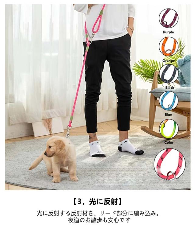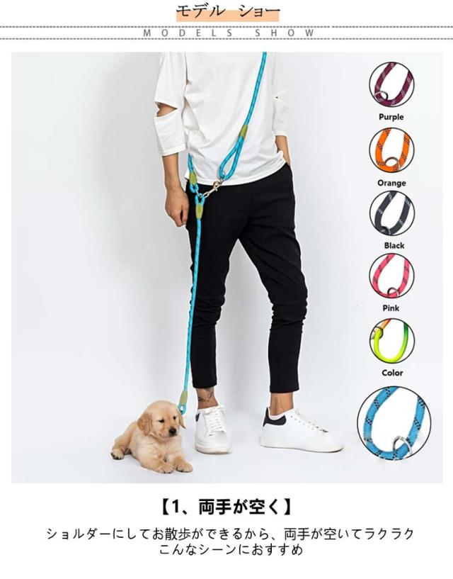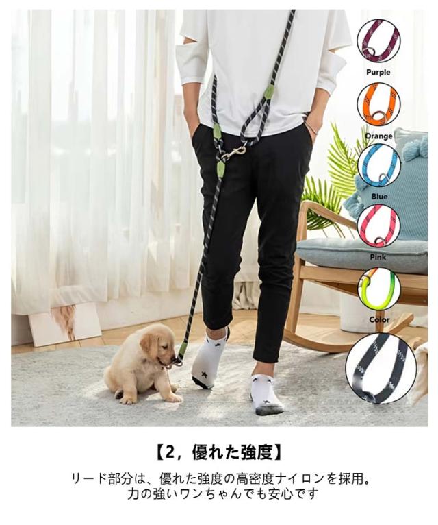| 両手が空くから多頭飼いでもラクラクお散歩 二頭引きハンズフリーリード 【1、両手が空く】 ショルダーにしてお散歩ができるから、両手が空いてラクラク♪ こんなシーンにおすすめ ・荷物がある時に ・子供と一緒のお散歩に ・スマホの操作時に ・引っ張り癖のあるワンちゃんに 肩掛けや腰掛けでお散歩できるから、手が痛くならない◎ リードを1本外せば 1頭だけでお散歩もできます! 【2,優れた強度】 リード部分は、優れた強度の高密度ナイロンを採用。 力の強いワンちゃんでも安心です◎ 【3,光に反射】 光に反射する反射材を、リード部分に編み込み。 夜道のお散歩も安心です◎ | |