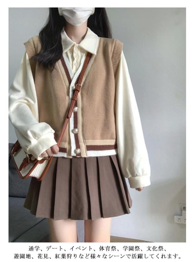 ベスト 3点セット 女の子 学生 ニットベスト プリーツスカート 3点セット シャツ 学院風 JK制服 韓国 プリーツスカート レディース セットアップ 上下セット 高校生 中学生 学生服 スクール コスプレ衣装