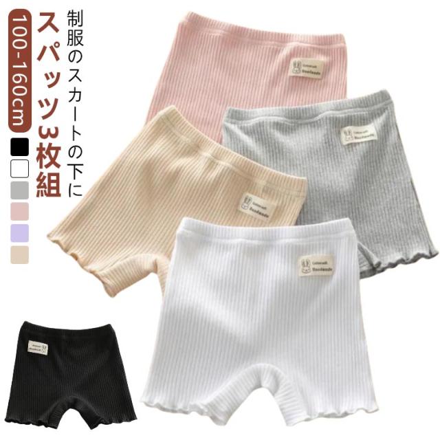cm ジュニア 120 スパッツ キッズ 肌色 150 幼稚園 白 オーバーパンツ コットン 3枚組 レディース 子供 制服 100 3枚組 110 1分丈 130 140 黒 アンダーパンツ 160 通学 通園 学生 女の子 スカート 下 フリル 裾 快適 ストレッチパンツ 涼感