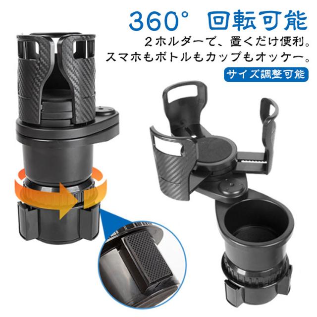 ドリンクホルダー 2in1 車用 ダブルドリンク ホルダー 車載 車用品 車内 ドリンク カップホルダー 紙パック ダブル 回転 マルチカップホルダー ダブルカップホルダー 拡張 車 カップ 収納 ダブルカップ 黒 スマホ ペットボトル 増設