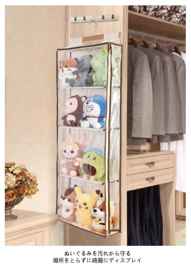 4段 ぬいぐるみ ウォールポケット 見せる収納 ぬいぐるみ 見せる収納 吊り下げ収納 ぬいぐるみ クローゼット収納 収納ポケット ディスプレイ 収納 透明 バッグ ドア掛け収納 壁掛け収納 コレクション カバン収納 クリア 大容量 折り畳める