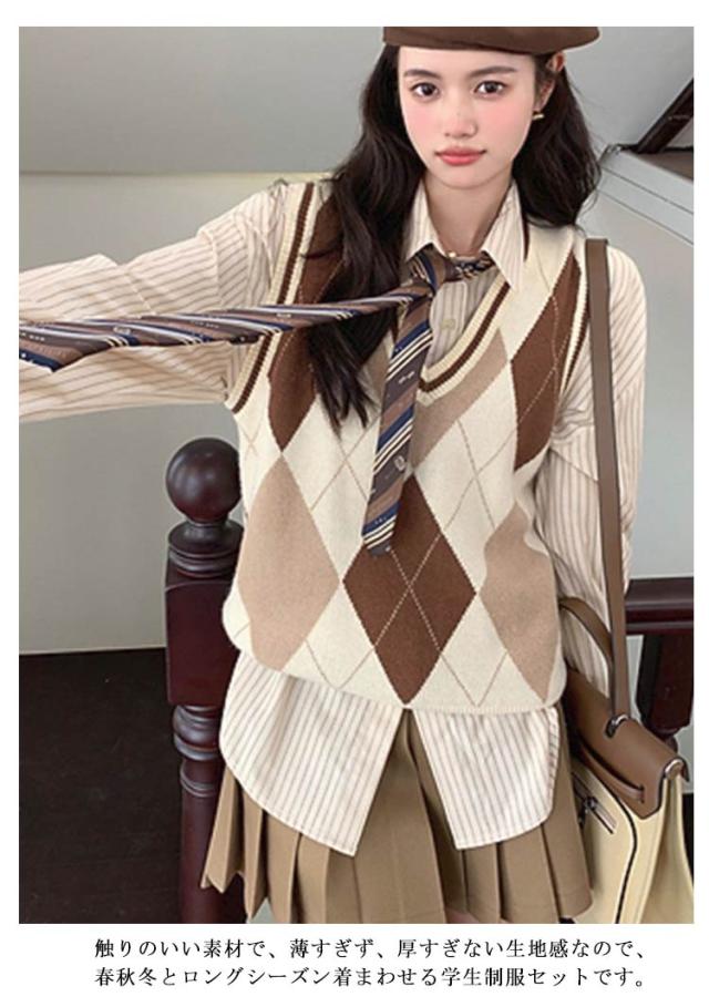 jk制服 プリーツスカート シャツ 中学生 学生 女の子 上下セット 高校生 女子 JK制服 長袖 制服 jk制服 高校生 3点セット ニットベスト 学生服 スクール コスプレ衣装 コスチューム 仮装