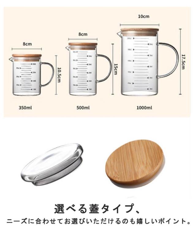 500ml 計量カップ 1000ml 電子レンジ対応 目盛り付き 耐熱ガラス 計量カップ 製菓道具 注ぎやすい 調理用具 取っ手付き キッチンツール 選べる蓋タイプ 350ml ミルク 調理器具 クリア ギフト お手入れ簡単 多機能