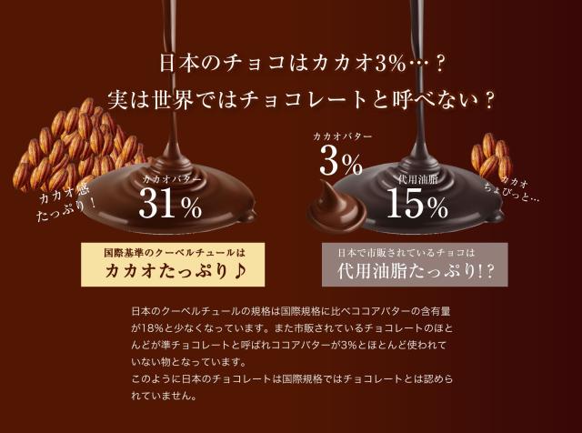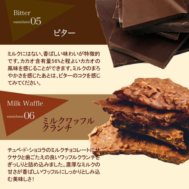 | 原材料 | 【ミルク】ココアバター(外国製造)、砂糖、乳糖、全粉乳、カカオマス/乳化剤、香料 【ミルクワッフル】砂糖(外国製造)、ココアバター、乳糖、小麦粉、全粉乳、カカオマス、植物油脂、食塩/乳化剤、香料、着色料(カラメル、アナトー) 【ビターワッフル】ココアバター(外国製造)、砂糖、乳糖、小麦粉、ココアパウダー、カカオマス、植物油脂、食塩/乳化剤、香料、着色料(カラメル、アナトー) 【ホワイトクッキークランチ】砂糖(外国製造)、ココアバター、小麦粉、脱脂粉乳、ショートニング、バターオイル、ホエイパウダー、デキストリン、ココアパウダー、食塩/乳化剤、着色料(カラメル)、膨張剤(重炭酸アンモニウム)、香料、 (一部に乳成分・小麦・大豆を含む) |