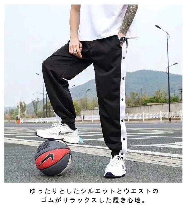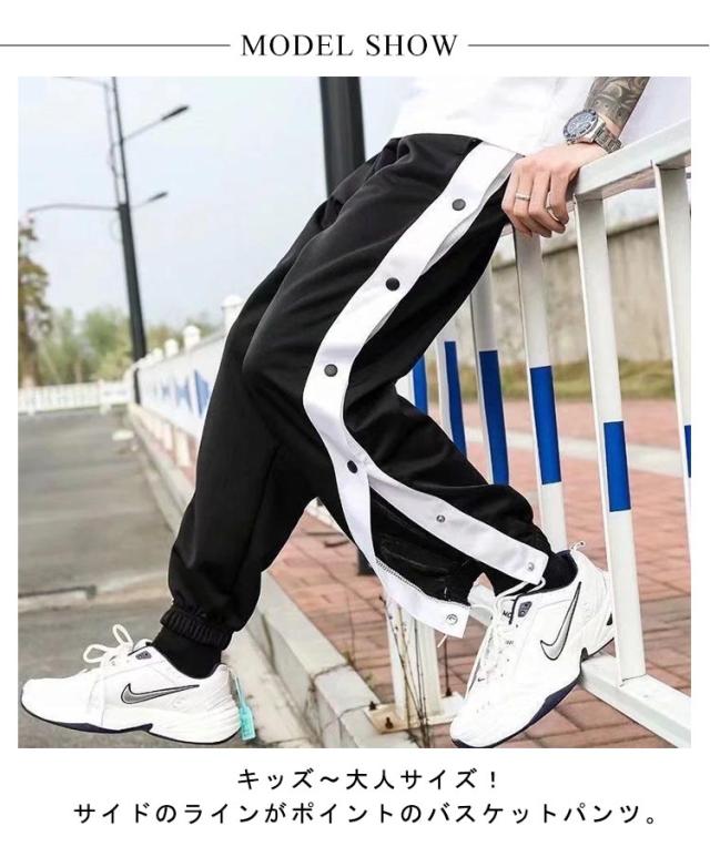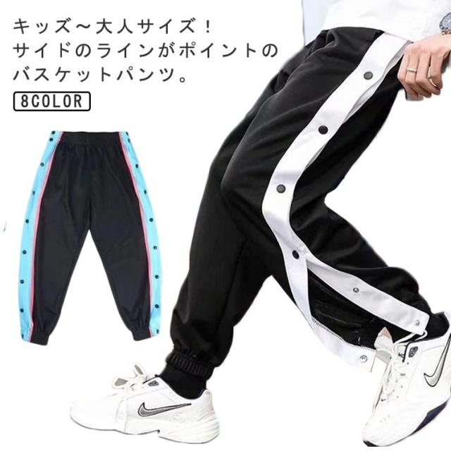大人 バスケットボールパンツ スナップボタン 裾ボタン キッズ ボトムス ジュニア バスケットパンツ 長ズボン サイドライン 女性 ジャージ 下 男性 ロングパンツ メンズ レディース バスパン バスケパンツ ウエストゴム ゆったり 大きいサイズ カジュアル