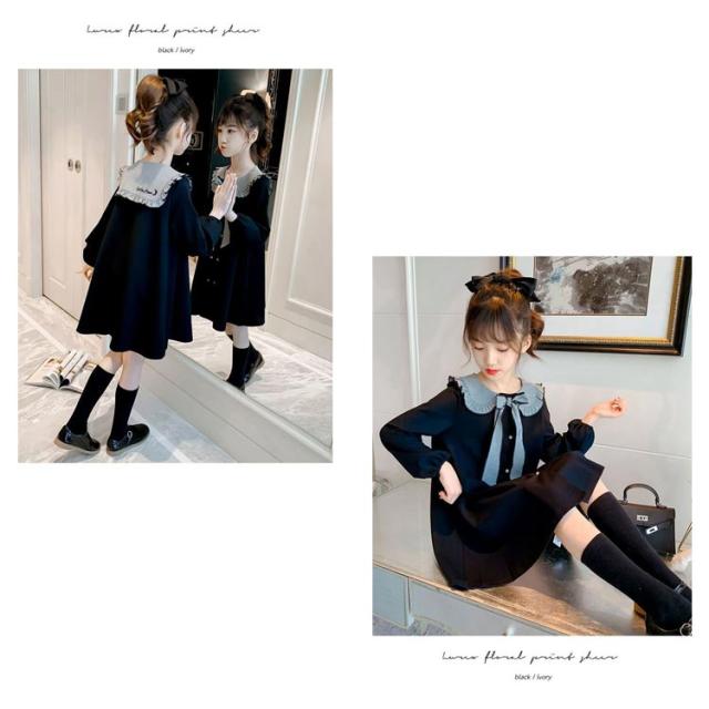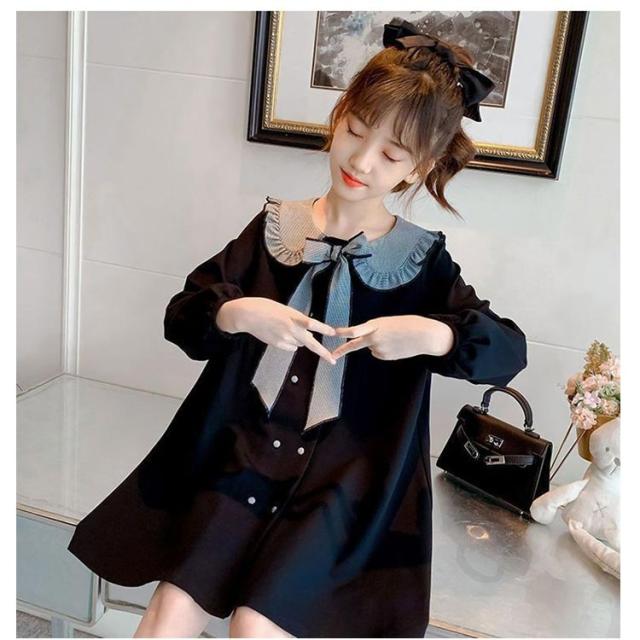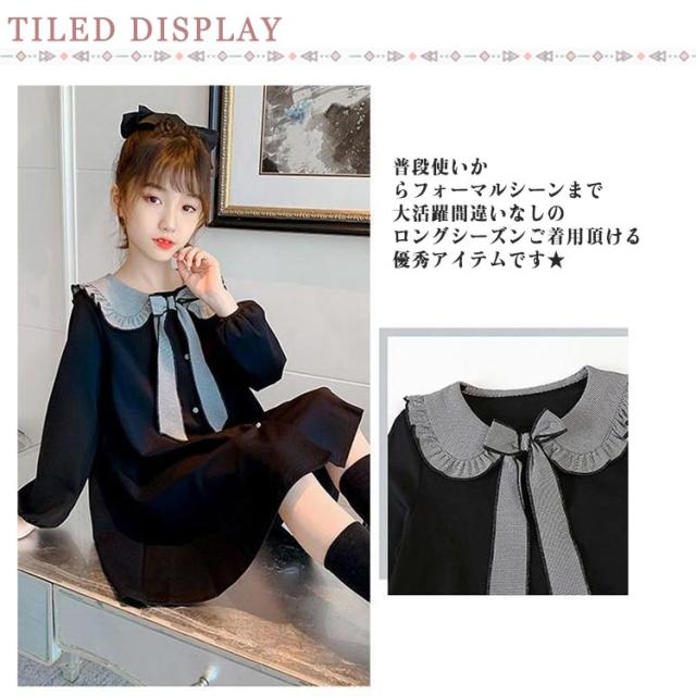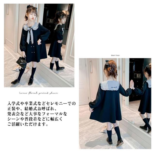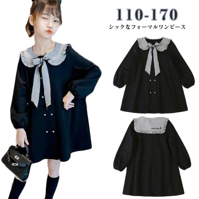 ワンピース かわいい 卒業式 入園式 110 ひざ丈 170 女の子 リボン付き 長袖 発表会 七五三 入学式 学院風 襟 子供服 女の子 卒園式 120 130 140 150 160 発表会 プルオーバー ボタン ワンピース キッズ用 可愛い 大きいサイズ