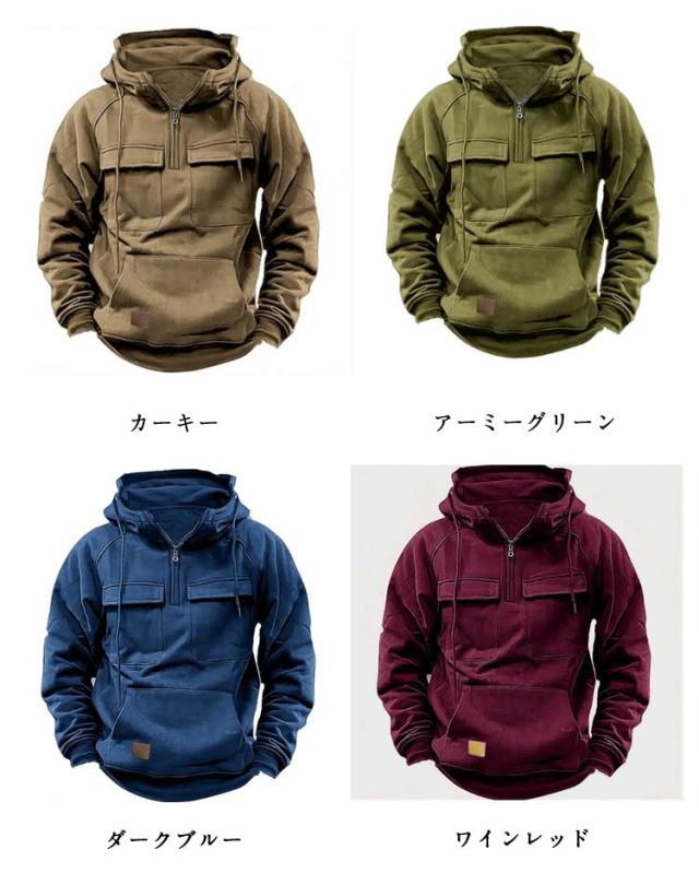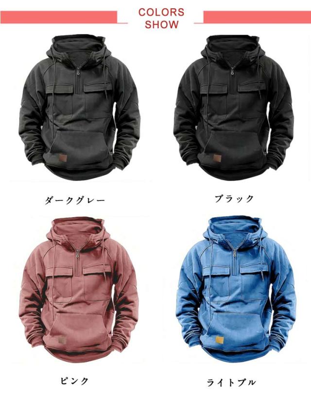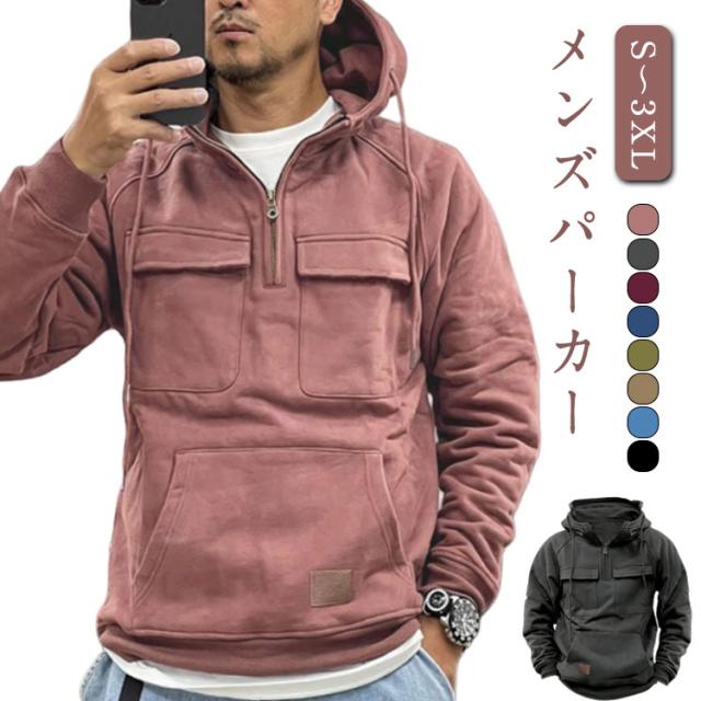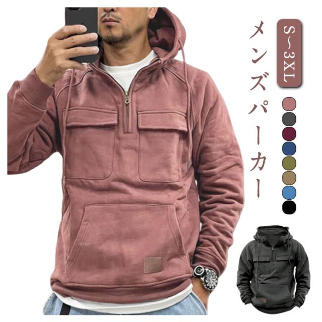 メンズ 防寒 パーカー アウトドア メンズファッション マウンテンパーカー プルオーバー 春秋冬 ジップアップ 紳士服 ハーフジップ カジュアル おしゃれ フード付き 無地 作業着 登山 お釣り 秋冬 大人男性