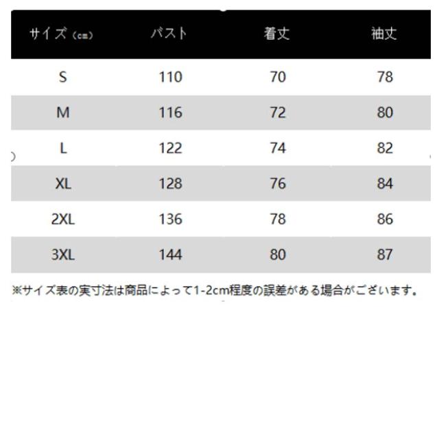 | サイズ | S M L XL 2XL 3XL |