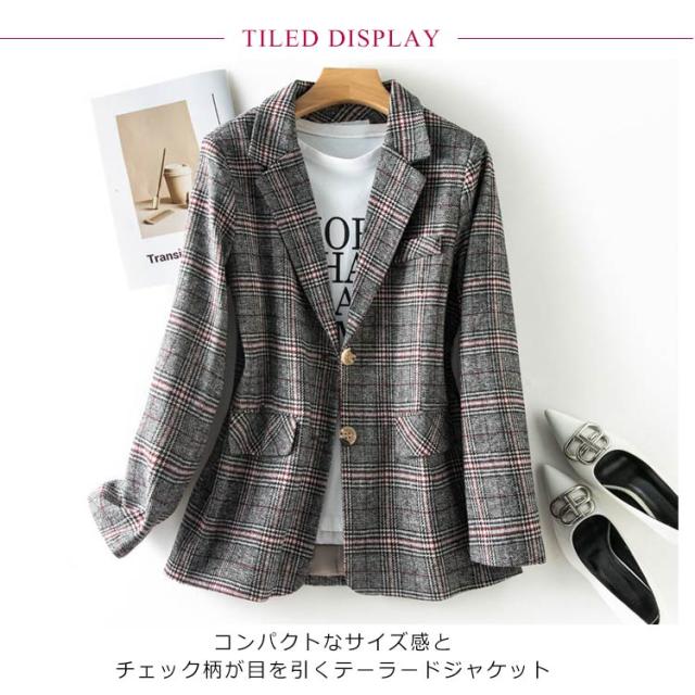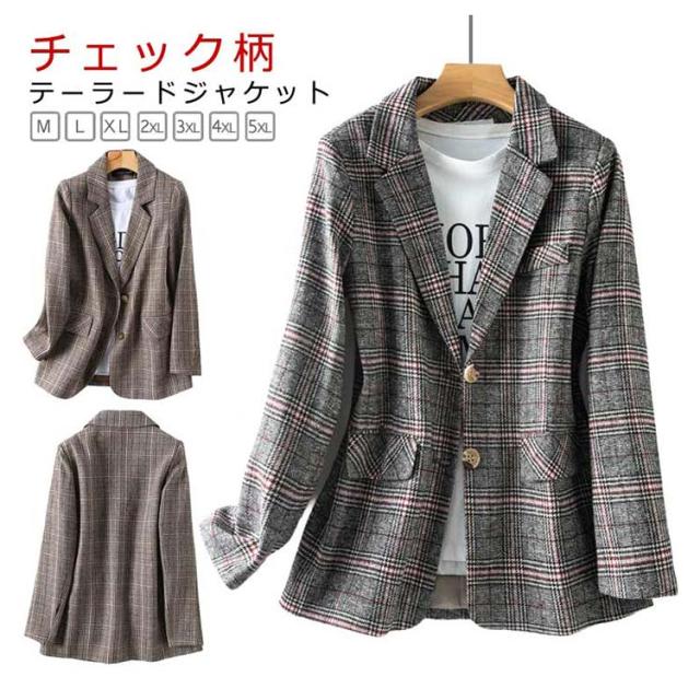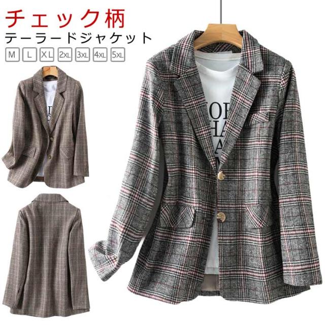 ショート丈 チェック テーラードジャケット テーラード ジャケット アウター 大きいサイズ テーラードジャケット スプリングコート 裏地付き ライトアウター カジュアルスーツ 夏 秋 春 コート レディース 大人 カジュアル オフィス 通勤 オケージョン おしゃれ