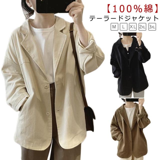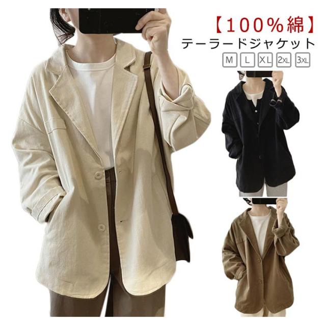春 綿 コットン アウター テーラードジャケット 秋 テーラード ジャケット ミドル丈 長め テーラードジャケット ツイル生地 レディース スーツジャケット 厚手 スプリングコート 大きいサイズ ダブル ライトアウター 上着 羽織り 大人 カジュアル 通勤 おしゃれ