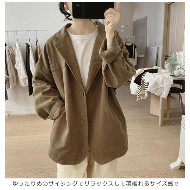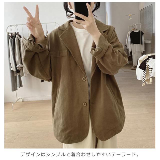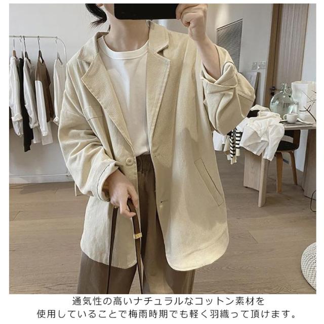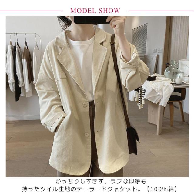 | かっちりしすぎず、ラフな印象も持ったツイル生地のテーラードジャケット。【100%綿】 通気性の高いナチュラルなコットン素材を使用していることで梅雨時期でも軽く羽織って頂けます。 ゆったりめのサイジングでリラックスして羽織れるサイズ感◎ デザインはシンプルで着合わせしやすいテーラード。 お手入れのしやすい綿素材で気兼ねなく着れるのも嬉しいポイント! | |