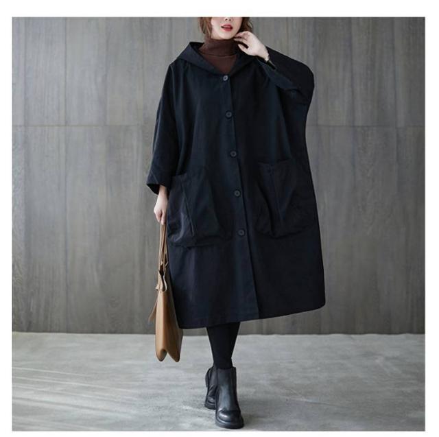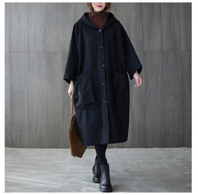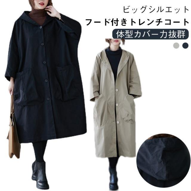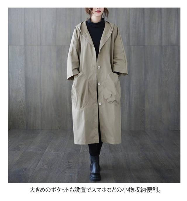 フード付きトレンチコート トレンチコート 膝下丈 レディース オーバーサイズ スプリングコート フード付きトレンチコート ロングコート ビッグポケット 体型カバー 春服 秋服