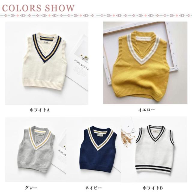 | 春秋冬の大人気のスクールニットベスト 柔らかく、温かなニット素材が楽ちんな着心地を叶えてくれます。 配色ラインをあしらったデザインがポイント。 シンプルなインナーにパッと合わせるだけでかわいい印象に。 通園通学、お出かけに、体温調節にもかかせない便利アイテムです! | |