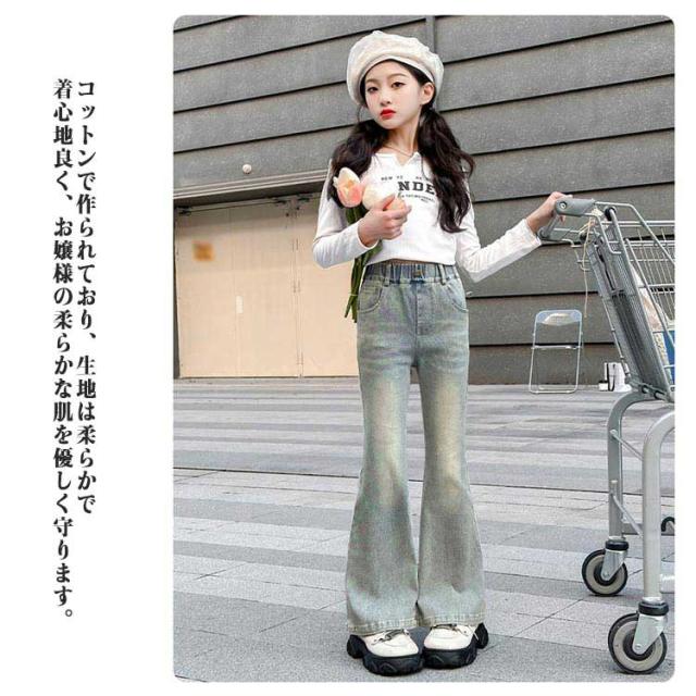 衣装 ジーンズ 子供服 デニムパンツ フレアパンツ ジーパン デニム 女の子 おしゃれ ダンス 春 秋服 ロングパンツ 韓国ファッション キッズ ジュニア ズボン ボトムス ジーンズ かわいい 小学生 中学生 ギフト プレゼント