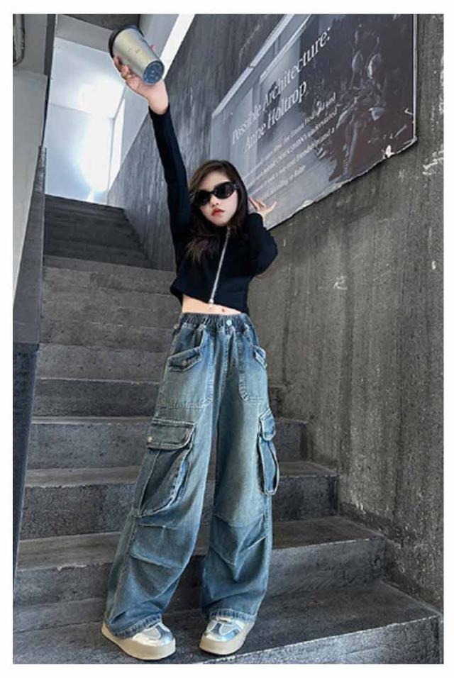 ダンス キッズ 子供服 カーゴパンツ 衣装 女の子 デニム ロングパンツ 快適 Jeans 120 130 140 150 160 170 ワイドパンツ パンツ ジーパン 男の子 ゆったり ダンス衣装 カッコイイ 春秋冬 キッズ リラックス ウエストゴム ギフト プレゼント
